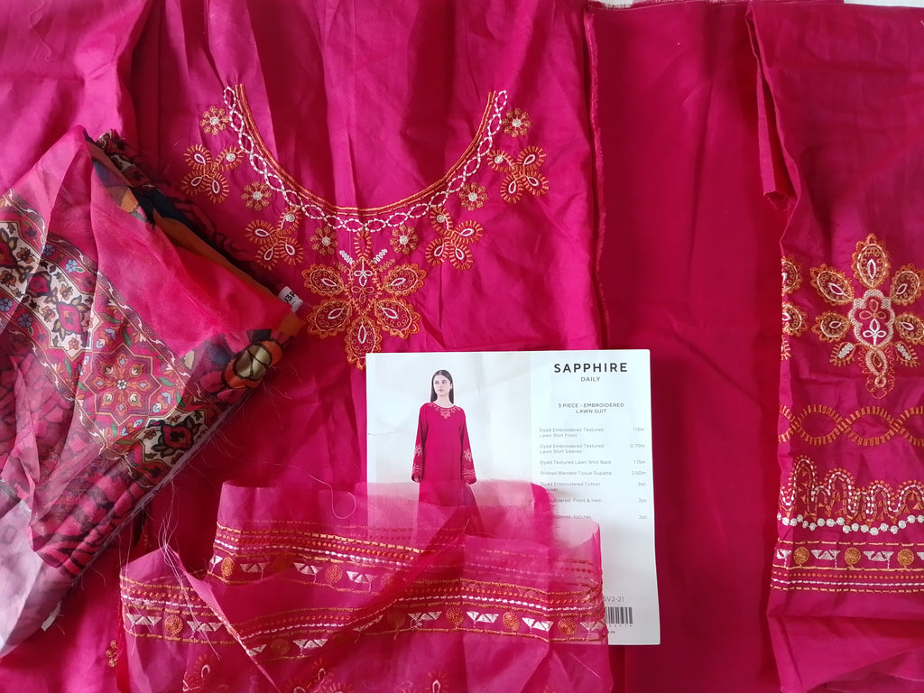 Make a bold and graceful impression with this luxurious 3-piece embroidery lawn suit in a captivating 🌺 Rosewood hue. Deep pink tones, artistic threadwork, and a flowing printed dupatta come together to create a refined yet statement-making summer look.