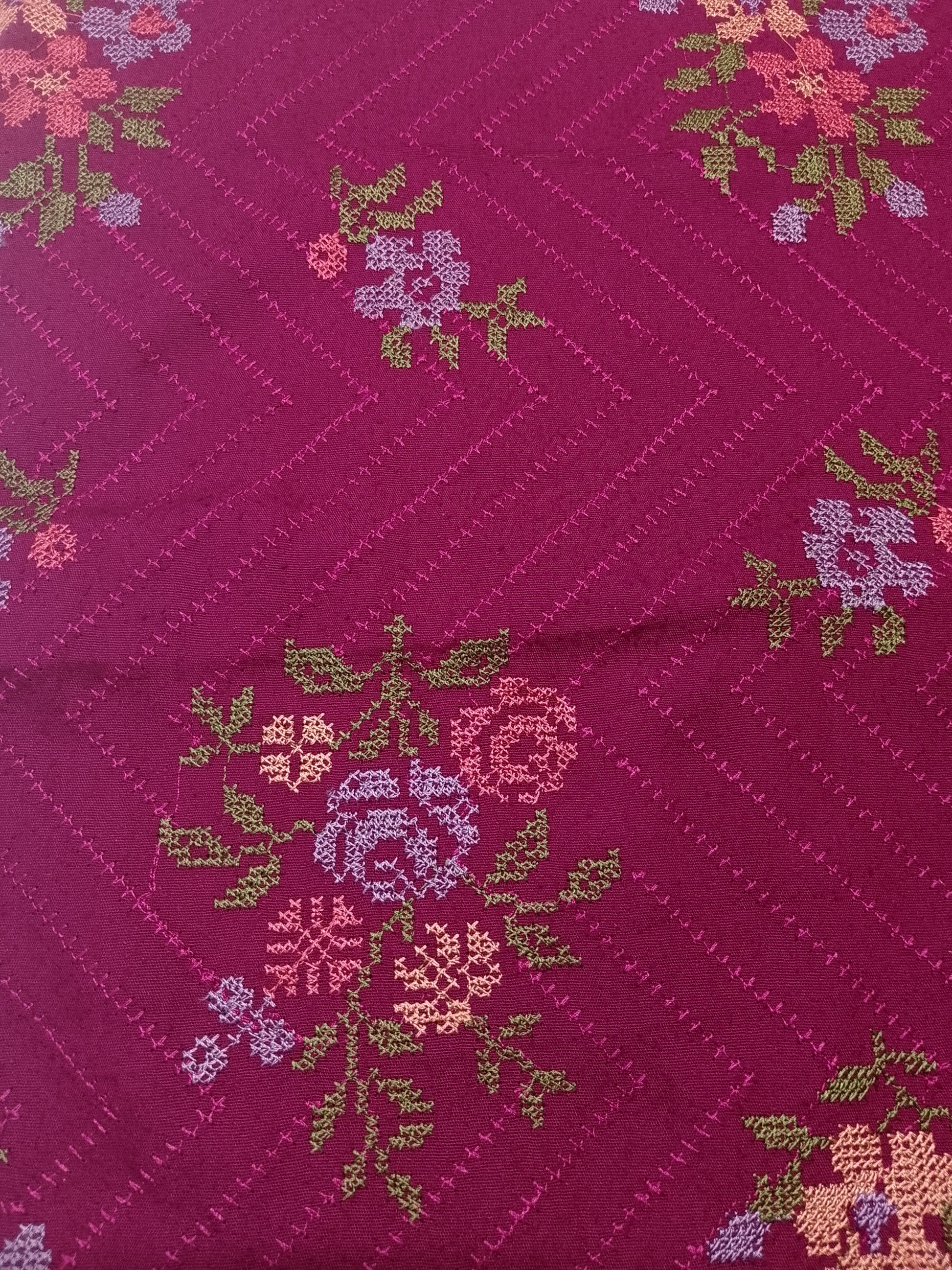 🍷 Multi-color cross-stitch embroidery (green, pink, peach)
