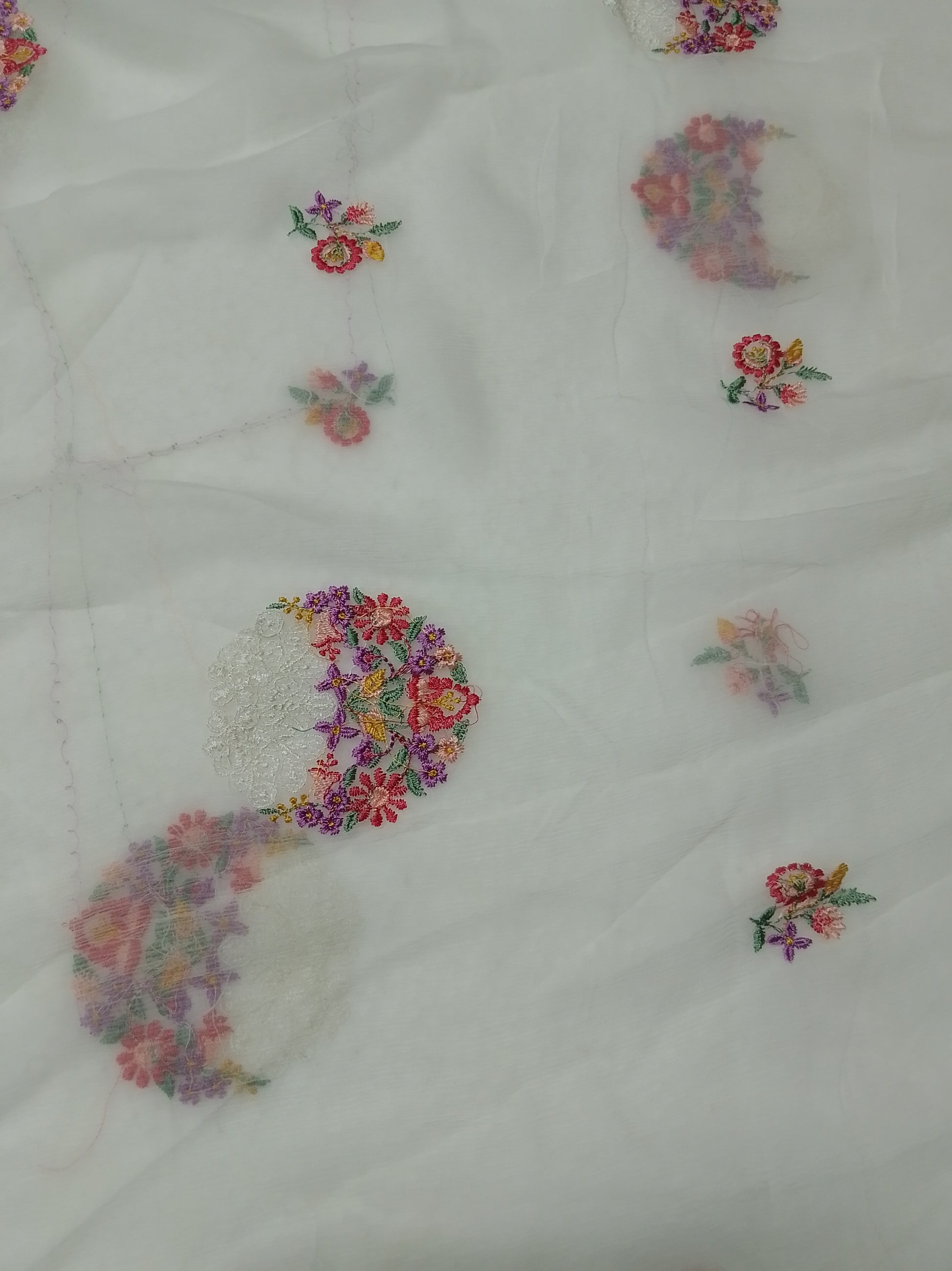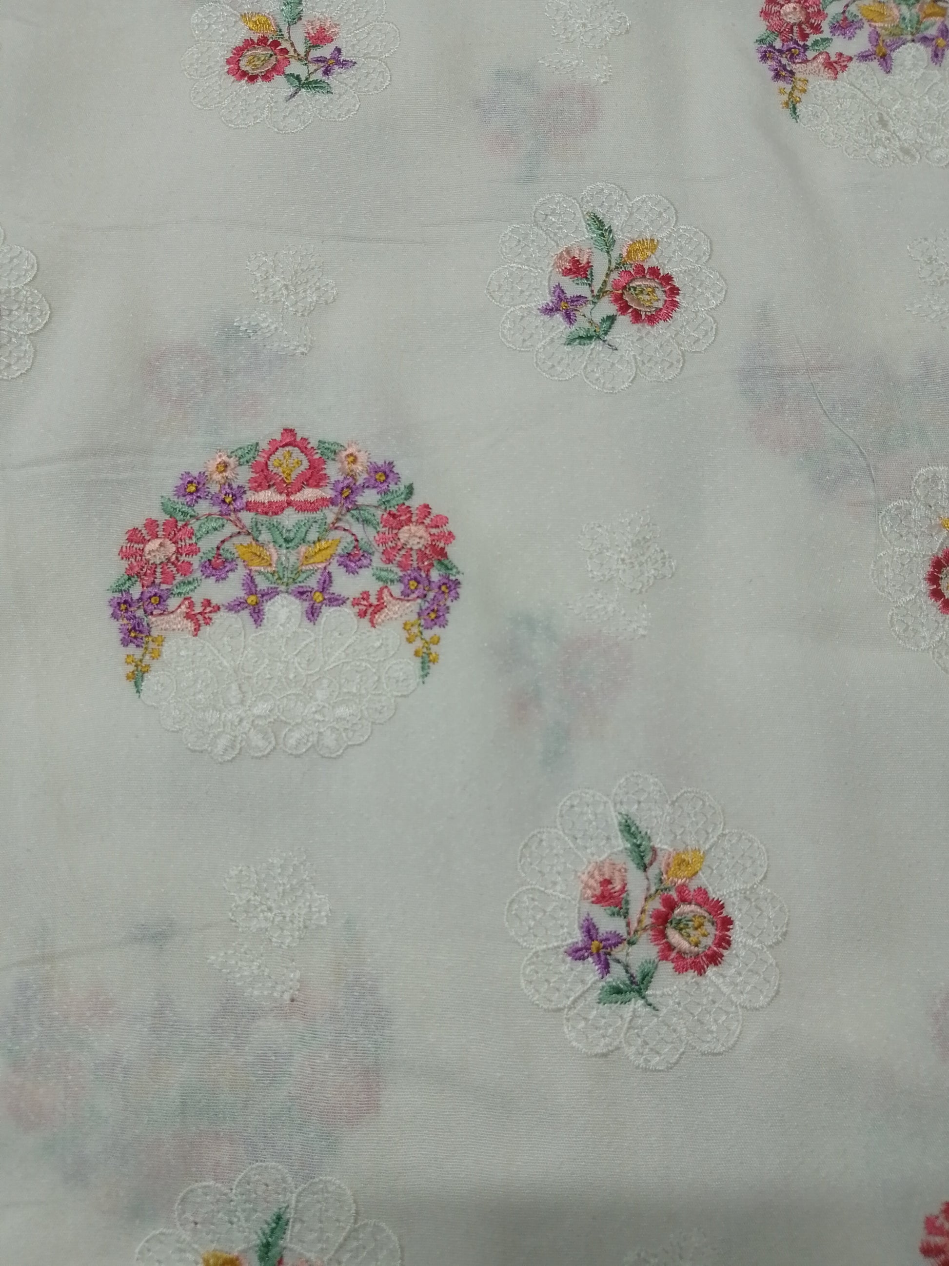 🌸 Multi-color floral embroidery in pink, purple & green tones