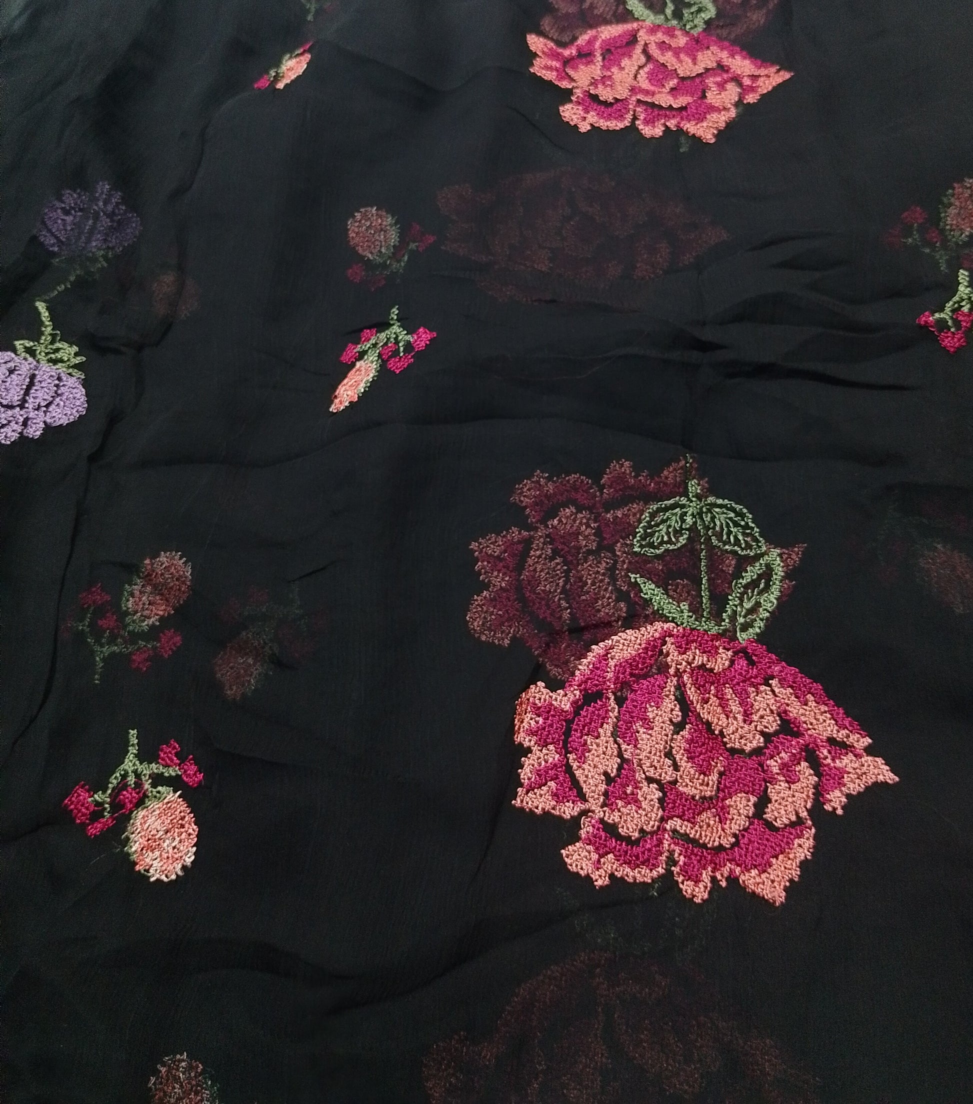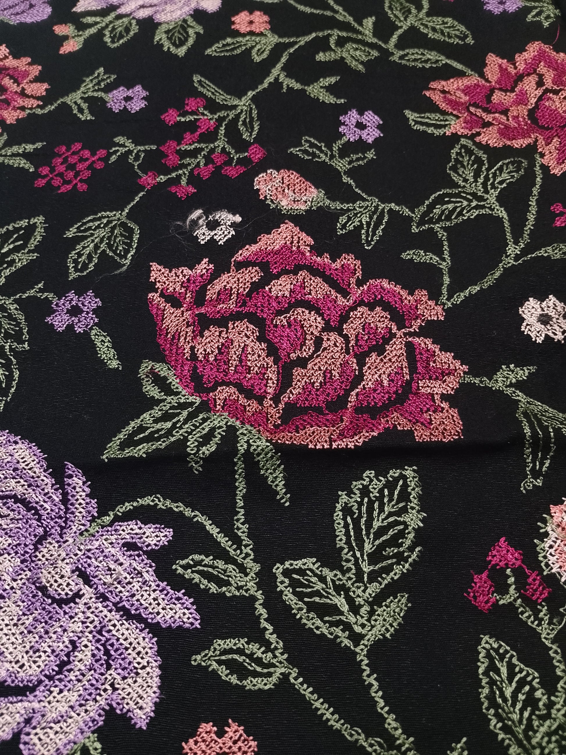 🖤 Multi-color floral cross-stitch embroidery (pink, green, purple)