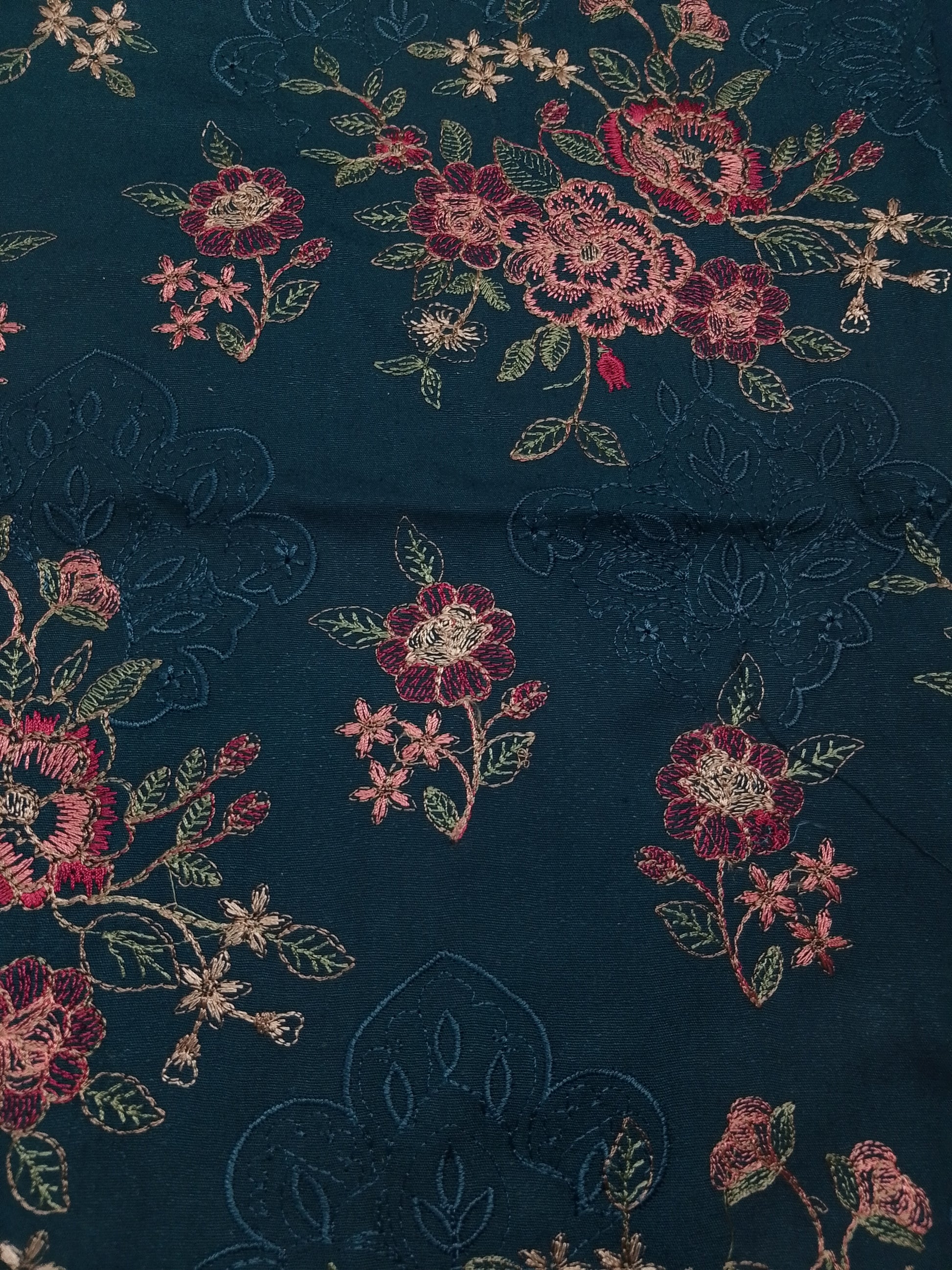 🌷 Multi-color floral embroidery (pink, red, peach, green)