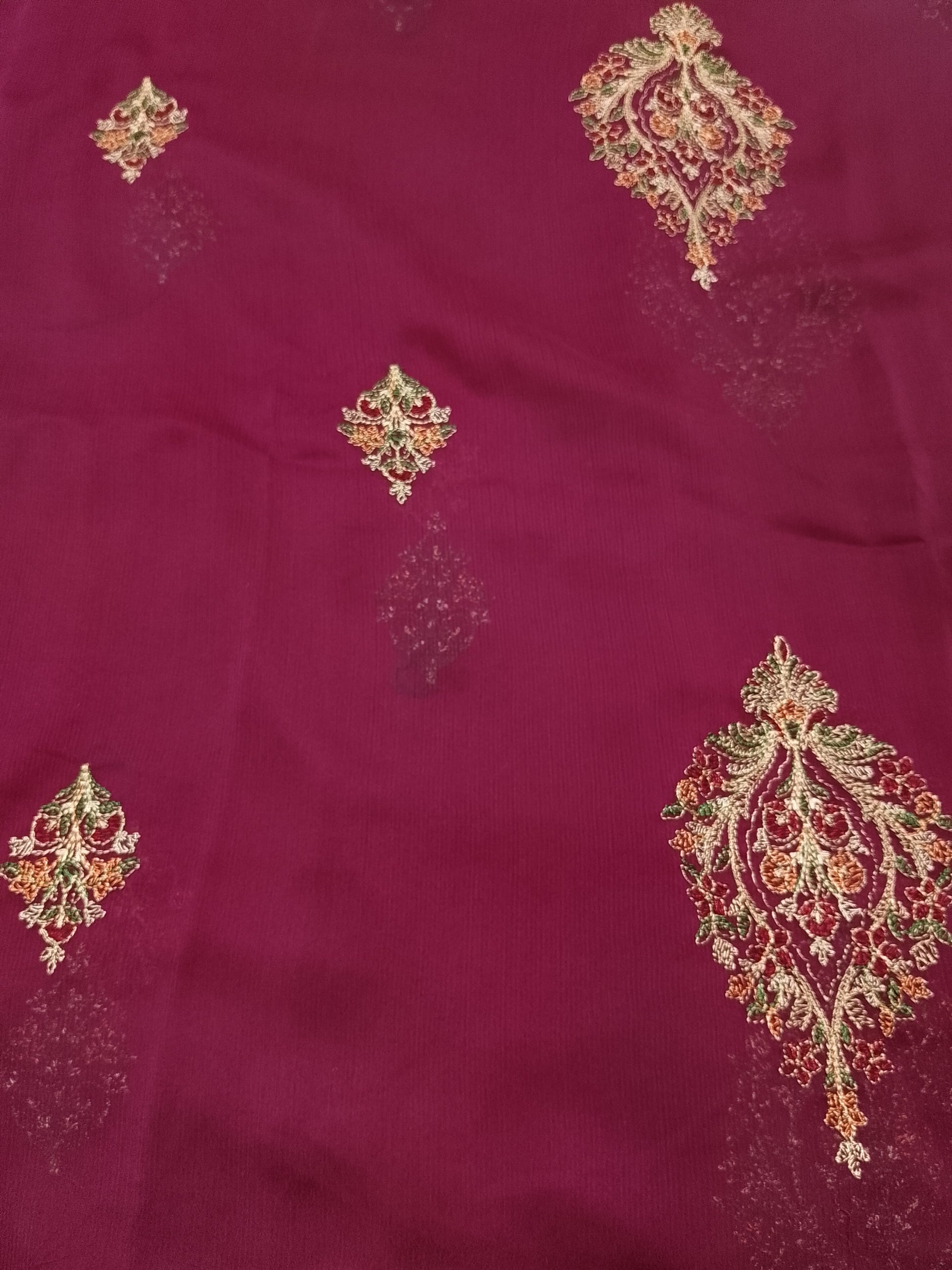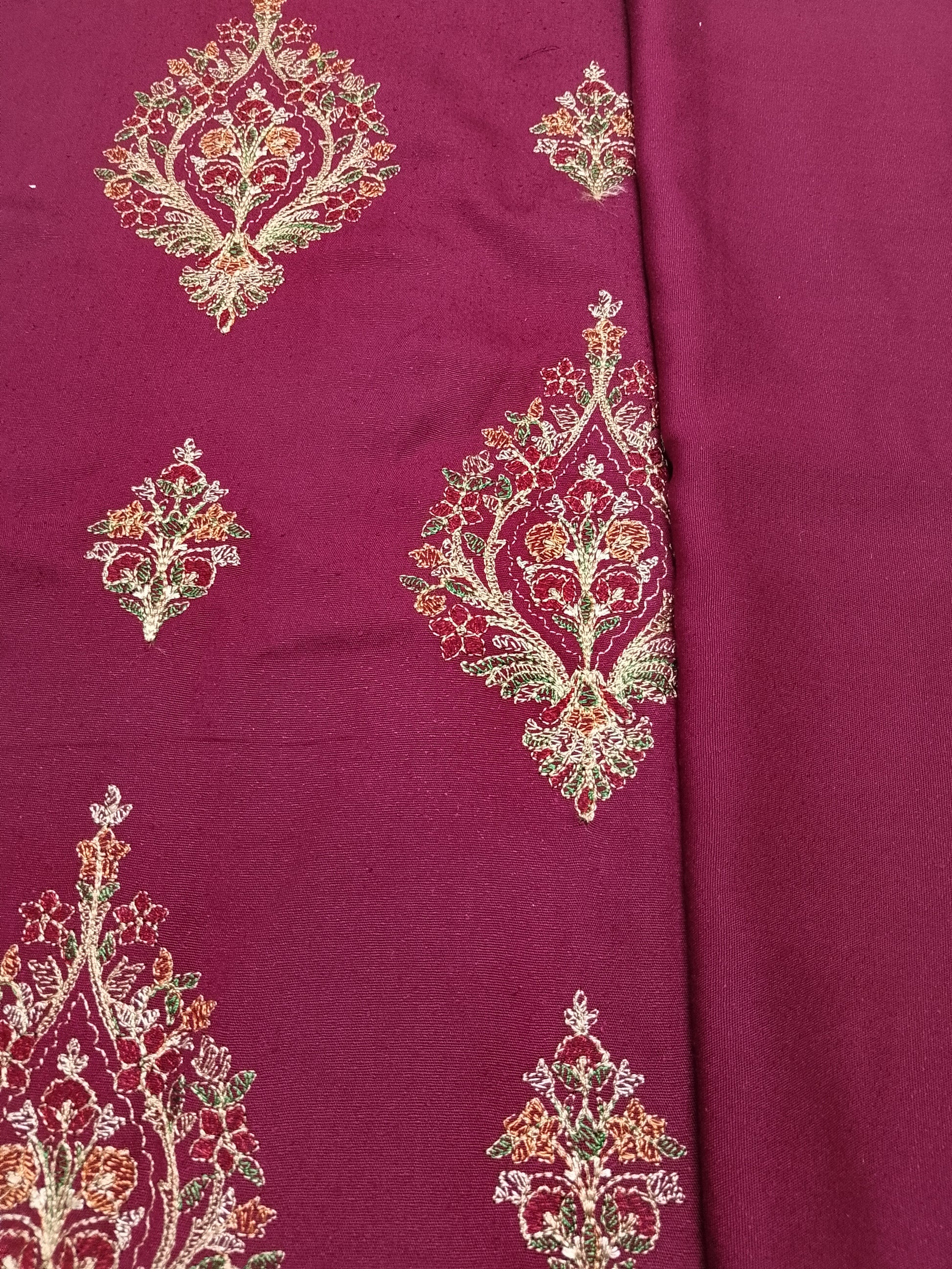 🍷 Luxurious maroon base with bold multicolor embroidery