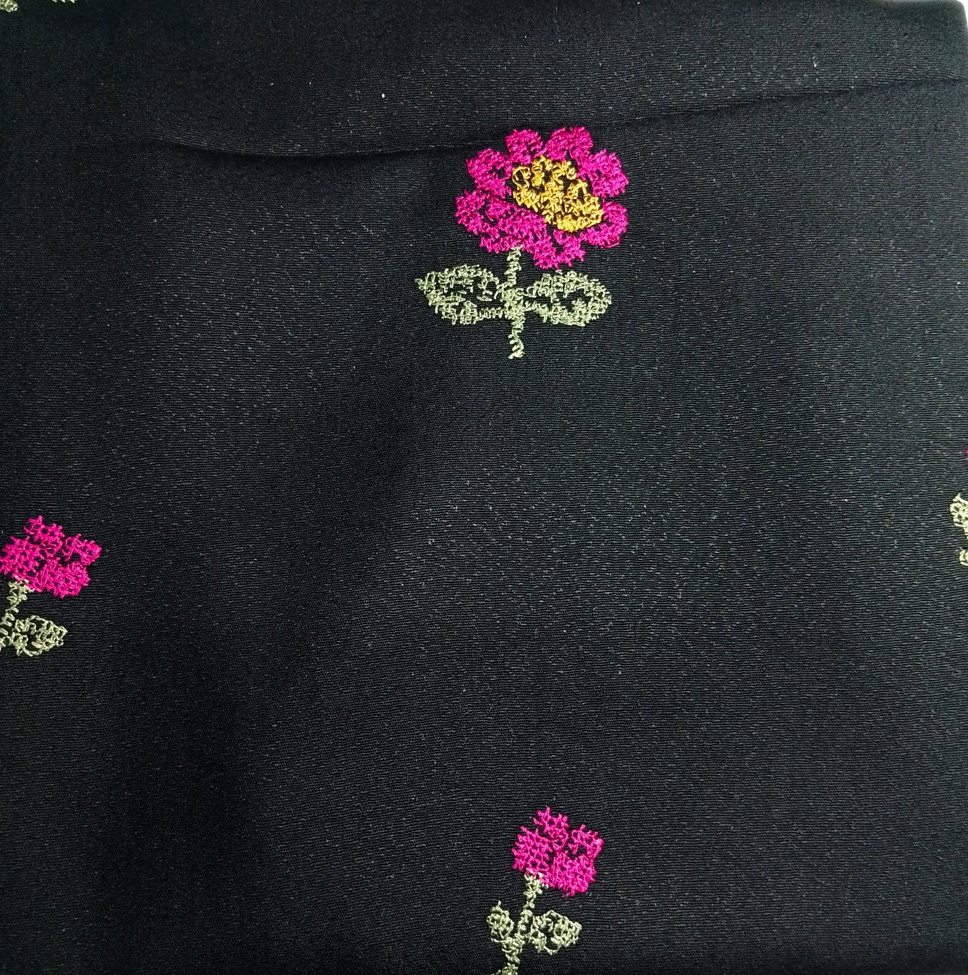 🌸 Vibrant floral embroidery with cross-stitch detailing